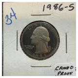 1986-S CAMEO PROOF WASHINGTON QUARTER |