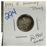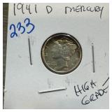1941-S MERCURY SILVER DIME BETTER GRADE |