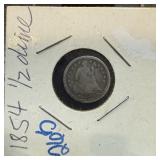 1854 SEATED LIBERTY SILVER HALF DIME |