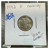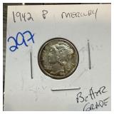 1942 MERCURY SILVER DIME BETTER GRADE |