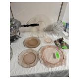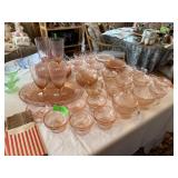 LARGE SET OF DEPRESSION GLASS CABBAGE ROSE NOTE |