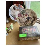 2PC GLORIA VANDERBILT PLATES & METAL CHOCOLATE TIN |