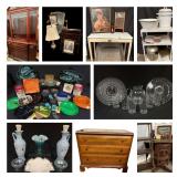 Welcome Home to CTBids! We put together an excellent selection of items for you! Start exploring and discover the deals for yourself! Bidding on ALL items starts at $1! Shop before Memorial Day and the summer season begins. This Collection includes many vintage and antique finds. Browse our sale for costume jewelry, Noritaki Naomi china, Turkish silk rug, French marble top chests, formal sitting, RCA Stereo Orthophonic, Brass floor lamp, cedar chest, mirrored chifforobe, large crock, Royal typewriter, Singer sewing machine and cabinetry, Mahogony dining table and chairs, mixed metals, art, ashtrays, Fenton, metal tables, iridescent glass, uranium glass, Hoosier cabinet, milk glass, Griswold cast iron, Anchor Hocking Green Boopie glass, Cutco knife and sharpener and more. Be sure to view all the pictures for each lot. Place your bids & have fun! If you encounter any technical issues, please call 844-424-34 EVERYTHING MUST GO!