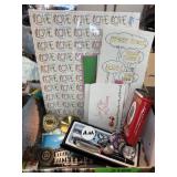 LARGE BOX OF MISC THERES A LOT/ GLASS DECOR & MORE |