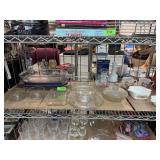 CONTENTS OF SHELF LARGE LOT OF GLASSWARE / PYREX |