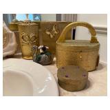 All the pretty things are in the boutique with Janet and Jennifer this weekend at the Jewelry and Collectibles Counter.. an assortment of precious Metals.. some Gold to Sterling and Various Vintage Costume Jewelry.. names like MNSN, a Rebecca Collins Butterfly Brooch Pendant, Whiting & Davis, St. John Charm Bracelet, Ciner, Robert Rose, Jan Michaels, Trifari, Ledo, a Mickey Mouse Lorus Watch Face, Christian Dior Cufflinks, Destino Cufflinks, Imperial Pearl Syndicate 10k Necklace, Sterling Milliefiori Cross Pendant Necklace, Articulated Abalone Fish Pendant, Sterling Fisher Alexandria Footed Compote Candy Candy Dish, Vintage Perfume Bottles, Hermes “Swing”Scarf, St. John Scarves, Bill Blass Scarf, Dooney & Bourke Wallet, Men’s Coach Wallet, USN Chief Petty Officer Hat Badge, Pierre Cardin Pens, Cross Pens, a Vintage Brass & Beveled Hand Painted Floral Mirrored Fireplace Screen, Limoges, Wave Crest Trinket Boxes, Baccarat Heart, US Mint Philadelphia Coin Sets, Operation Iraqi Freedom American Gold Eagle Coin, Sacagawea Dollar Coins to Vintage Transit Tokens just to mention a few things!