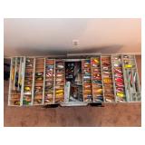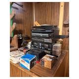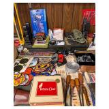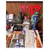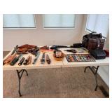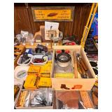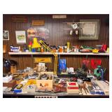 Ammunition, reload equipment, hunting knives, crossbows, Spider-Man comics, vintage Kodak cameras, vintage Polaroid camera, air soft guns, BB guns, single string bow, Xbox 360 console and games, vintage glass collection, swung vase, hand blown glass, giraffe collection, mid century modern lamps, recliner couch, scrap metal cars, embroidery and cross stitch art and supplies, men’s hunting clothing, hand painted fishing lures, fishing poles, Harmony House dresser and mirror, singer sewing machine, quilts, vintage tools, wood working tools, table saw, workout equipment, vintage typewriters, gun scopes, Victrola record player, canon replica, Righ-Tone record player, vinyl records, original JFK assassin news papers, Detroit Riot newspapers, original moon landing papers, ice fishing gear, Carhartt, Minnesota A sewing machine, vintage board games, antique water board, Focal telescope, hammock, boat motors, lawn mower, patio furniture, outdoor swing, trailer