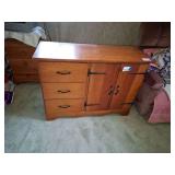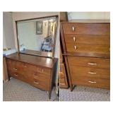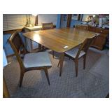 8001 Drexel mid-century drop leaf table with three leaves, four chairs