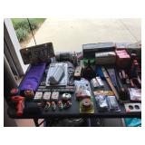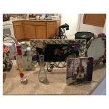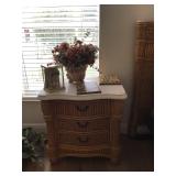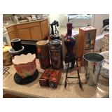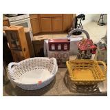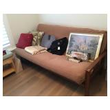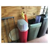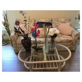 Floral artwork Wicker furniture Lamps Coffee table Faux plants Rugs Kitchen table Bakers rack China hutch Bar stools Dinette Small kitchen appliances Bakeware Dish sets Collectible bear stuffies Couch Bookshelves Office supplies Office chair Entertainment center Television Corner desk End tables Vintage soda bottles Futon Storage bins Benches Puzzles Standing mirror Tommy Bahama style furniture Clothing Queen beds Ladders Fans Small tools Holiday decor PVC furniture Gardening supplies Folding chairs