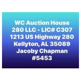 Location: WC Auction House 280 * 1213 US Hwy 280 Kellyton, Al. 35089