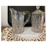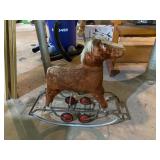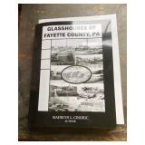 Thompson Uniontown glass examples of all 6 patterns Bow Tie, Summit, Torpedo, Loop & Block, Tile, Truncated Cube Signed copy Glasshouses of Fayette Co PA Madelyn Cindric Stoneware: A Conrad crock and Hamilton & Jones jug, Uniontown postcards and local memorabilia Local interest books Antique paw foot Walnut 1 door cabinet Curved front desk Antique oak furniture: hall tree, flat wall Cupboard, 4 section Barrister bookcase, washstand, 4 chairs Pine Primitive dry sink and table Lots horse and rabbit figurines Hallmark ornaments Costume jewelry JVC Stereo system 1970's 33 records & 8 tracks This Ends Up furniture