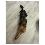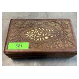 CARVED WOOD BOX W CONTENTS LIGHTERS / ETC NOTE |
