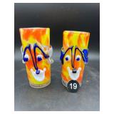 Pair Mid-Century Murano Italy Glass Dog Tumblers