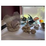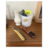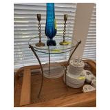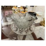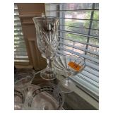 CRYSTAL HURRICANE & VTG GLASS COMPOTE |