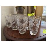 LOT OF ETCHED GLASSES |