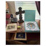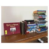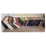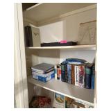 LOT OF TOP 2 SHELVES BOOKS & SOME FRAMES MISC |