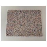 GLASS TOP COFFEE TABLE AND AREA RUG UNDER IT |