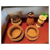 CARVED WOOD GNOME / ELF CANDY BOWL & OTHER |