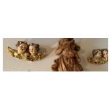 2PC HAND CARVED WOOD CHERUB ANGELS |