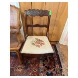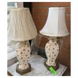 2PC ANTIQUE MARBLE TOP LYRE HARP END TABLES |