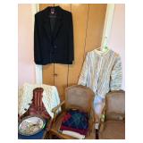 SOFA WITH CONTENTS ON TOP LOT OF PILLOWS BLANKETS |