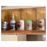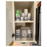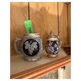 2PC AMBER BOHEMIAN CUT TO CLEAR BEER STEINS |