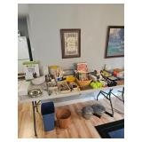 Great Small Sale! Come and check it out! Grandfather clock, living room furniture, console record player, artwork, piano, twin bed frames and box springs, dressers, dish sets, pots and pans, 2 sets of kitchen table and chairs, Hutch, Chicago Cutlery set, Christmas decor, rollaway bed, wedding dresses, games, pots and gardening misc., ladders, hunting clothes, lawn mower, bicycle, edger, garage miscellaneous, kitchen miscellaneous, & bathroom miscellaneous. Much more not pictured. |