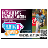 Play It Forward 502 Charity Auction Hosted by the Louisville Bats & Legacy Home & Estate Services Online Auction: June 20–27, 2025 Ends: Friday, June 27 at 7:00 PM EST Pickup Location: 7202 Hwy 329, Crestwood, KY 40014 Bid Now at: LegacyLouisville.com/stores/louisville-bats-playing-it-forward Legacy Home & Estate Services is teaming up with the Louisville Bats to deliver a one-of-a-kind auction in support of Play It Forward 502, a local nonprofit dedicated to improving access to youth sports, equipment, and mentorship programs. Every dollar raised goes straight back into the community—helping kids in Louisville gain access to the game they love. Auction Highlights: