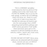 IMPORTANT INFORMATION !!! This is a MASSIVE sprawling estate/property that has plenty of flat walking room in the main house, but PLEASE BE AWARE that to access the main garage, as well as all out buildings, shop, tool areas, etc…there is a very steep set of stairs to go down (it’s literally the only way out back) to get into the main garage, then a VERY steep/long/narrow/brick pathway and VERY uneven ground to “trek” (walk) down (and back up) to get to the treasures in all back buildings (as well as vehicles, trailers, carport area, more tools, yard tools, etc…) PLEASE DO NOT ATTEMPT these areas unless you are prepared with the proper shoes, and are sure you can SAFELY navigate them both ways.