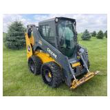 Skidloaders: 2019 John Deere 318G Skidloader–1 Owner—SN:1T0318GAHLJ387260, shows 5250 hours, hydraulic quick tach, air less tires, auxiliary hydraulics, heat/ac(Ac needs some work), hand and foot controls 2006 John Deere 317 Skidloader–2nd Owner—SN:T00317A133657, shows 4295 hours, 4 sets of rear weights, manual quick tach, 10-16.5 tires