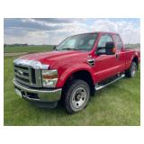 Pickup: 2009 Ford F250 Super Duty XLT Ext Cab Pickup—VIN:1FTSX21Y39EA34633, shows 91,051 miles, 6 1/2ft box, cloth interior, plastic bed liner, fifth wheel ball, 4×4, tow mirrors, 265/70R17 tires, 6.8L gas engine