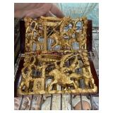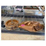 WOOD & BRASS INDIAN MEAT SERVING CARVING SET |