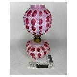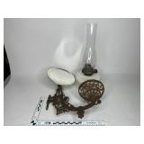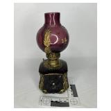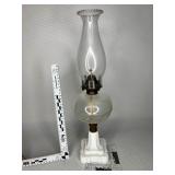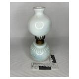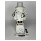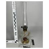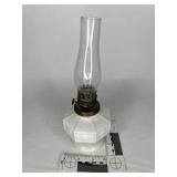 Kerosene Lamps · Clear fluted glass lamp with chimney · White & blue glass lamp with chimney · Purple glass lamp with matching chimney · White glass lamp with narrow clear glass chimney · Clear glass lamp with matching glass chimney · Clear glass lamp with handle and glass chimney · Clear glass lamp with chimney · Green glass lamp with metal shade and chimney · White glass lamp with matching glass shade and chimney · Honeycomb glass lamp with matching globe · White lamp with matching white globe · Clear glass lamp with red & white painted flowers with clear glass chimney · Clear glass lamp with chimney · Clear glass lamp with metal handle · Black glass lamp with clear chimney · Brass lamp oil can · Metal lamp post base lamp with clear chimney · Amber glass base lamp with clear chimney · White glass base lamp with clear chimney · White glass base lamp with clear chimney · Amber post with clear base lamp with painted images, clear chimney · Brass base lamp with clear chimney · Brown ceramic base lamp with clear chimney · White base lamp with clear chimney · Wall mount cast iron base lamp with reflector, white glass base and clear chimney · Amber base lamp with white glass globe shade · Clear glass small lamp with handle and chimney · White glass base lamp with clear glass chimney · Amber glass base lamp with clear glass chimney · Clear glass lamp with side handles and glass chimney · Walking lamp with metal base & glass chimney · Vapo Cresolene kerosene medical oil lamp · Clear glass lamp with round base with glass chimney · Press glass lamp without chimney · Clear pressed glass scalloped lamp with chimney · Pressed clear glass lamp without chimney · Ornate pressed clear glass lamp with chimney