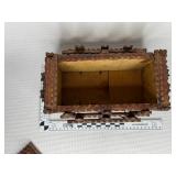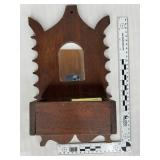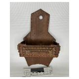 Match Safes · Stamped metal match safe · Small metal match safe - shape of artist's palette · Primitive match safe in shape of chair · Wooden match safe with Conroy's advertisment · Wooden advertising match safe · Plastic match safe by Palmer Plastics · Wooden 2-pocket match safe with fleur-de-lis decor · Wooden match safe with space for match boxes · Cast iron match safe in shape of tree stump · Nashville, TN souvenir match safe · Primitive black metal match safe · Primitive wooden single pocket match safe · Match safe with American Indian decoration · Winchester, Ind. souvenir match safe · Simple painted stamped metal match safe with lid · Black metal match safe with pocket for match boxes · Round metal 2-pocket match safe · Small stamped metal match safe with hinged lid · Wooden souvenir match safe · Primitive pottery match safe · Ever ONE Ready matches metal match safe · Metal match safe modern repaint with frog · Wooden match safe with gypsy dance decor · Mariachi guitar player wooden match safe · Green stamped metal match safe · Large carved wooden match safe · 2-pocket metal match safe · Wooden match safe with mother & child image · Ceresota Flour advertising match safe · Painted stamped metal match safe · Wooden match safe with windmill decoration · Cast iron single pocket match safe · Painted wooden double pocket match safe · Metal kitchen match box cover · Wooden match safe with acorn & clover · Primitive wooden match safe with painted image · Wooden match safe in style of acorn and oak leaf · Ornate hand carved wooden match safe · Large metal match safe with hinged lid