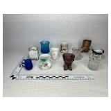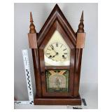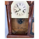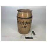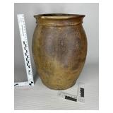 Crocks · Crock beer bottle · Brown stoneware beehive jug · Dark brown stoneware jug · New Haven Clock Company wood mantle clock with spires · Brown open top crock · Salt glazed crock with opening at the bottom · Anchouls salt glazed crock · Green glazed cylinder crock