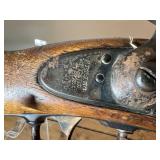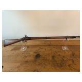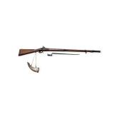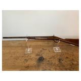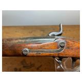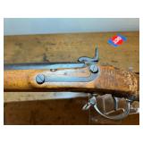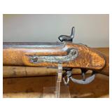 Firearms & Accessories · Powder horns · Musket ball bags · Shotgun powder & shot measure tool · Musket ball shaping tool · Harpers Ferry 1844 rifle, cut down · Springfield 1852 rifle with ramrod & bayonet · English rifle
