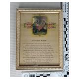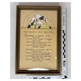 Pictures & Framed Pieces · Primitive church paintings · Tramp art frame · Friedman -Shelby Shoe Company Tin Sign- Fossell & Heller St Charles, MO · African American framed prints · My Mississippi Missus Misses Me framed sheet music · The Butcher’s Funeral framed art · Perry Davis Painkiller advertising black Americana print · Sweetmeats by Percy Wenrich, black Americana print · Peters Shoe Co St Louis, MO advertising print, black Americana · St Jacob’s Oil advertising framed print · Little Black Sambo framed print · Black Americana framed post card · Cream of Wheat black Americana framed advertising · Cream of Wheat advertising black Americana “Giddap, Uncle” print, framed · Tin Sears & Roebuck tin wall mount catalog holder · Arthur E Everest Funeral Director thermometer advertisement · 1913 Morris & Bendien NY Humorous framed print · Castoria elephant advertisement, framed · Rex Bitters framed advertisement · 1903 Life Pub Co advertisement · Humorous boy & girl framed print · Pears Shaving soap framed advertisement · Wood mirror · Wood mirror with green painted accent · Frances R. Wakely Jacksonville, Illinois active military 1893-1902 charcoal dated October 26, 1899 · Wood pocket with burned wood décor · Mennen’s Borated Talcum Toilet Powder framed advertising · Torrey’s No. Forty Razor Strop with original box · Signed landscape framed painting · Antique mirror with wall pocket and towel rack · Black Americana print in log cabin frame · Happy Hannah Cake Walk framed sheet music · Framed A Kitchen Prayer · Choice Fresh Ground White Corn Meal Framed bag Homing Milling St Charles, MO · Framed Sammy Marching Song sheet music · A Toast to the Flag poem signed by author John J Daly 1935 · McClures Magazine September 1918 issue framed · 1917 World War I Marion Powers “The Girl I Left Behind Me” print · Framed World War I Soldier’s Record, blank · Framed Presidental delegate Theodore Roosevelt pin/ribbon, George Washington pin, and various war ship pins, & state pins · Framed patriotic standees · Ribbon art girl figure, framed · Framed sewing themed art · Framed cross stitch sampler · Framed paper dolls · Framed silhouette art · Marry Widow prints framed · Child praying framed print · Victorian children with nannies framed print · Pictorial Review April 1914 framed · Framed Valentine’s · 1914 Snow White and the Seven Dwarves paper dolls uncut, framed · Child & Bunny print framed · “Is It Deep?” Girl on ice in wooden shoes print, framed · “The Good Sisters” M Meyer von Brennen framed print · “Les Lapins” print framed · H. E. Telthorst crying child with cat and spilt milk dated 2/15/1904 charcoal framed · Playmates play box framed · Harry Roseland framed print · “Babes in the Wood” St Louis, framed · Child round portrait · Child print framed · Wire Hair Fox Terrier print signed & framed · Framed record of birth & baptism dated 1844 · Boonville Mercantile- Boonville, MO 1927 framed advertising · Framed woman watercolor · Wood framed mirror · Currier & Ives “Pray God Bless Papa & Mama” framed · Whistlers Mother mirror · Philadelphia Fashions Walking Dress & Evening Dress Published for Lady’s Book October 1831-framed · In God We Trust Framed · German Needlepoint framed piece · Framed Curier Death of Leut. Col Henry Clay Jr. · Merry Christmas & Happy New Year wood framed mirror · Framed Aberham Lincoln portrait · Reinthal & Newman The Greatest Moments of a Girl’s Life · In Luck Drawn by A B Frost · Framed women silhouettes · Butterfly Wing birds-framed · Beautiful Poetic Gems handwritten/drawn-framed · The Lord Will Provide-needlepoint artwork framed · 1820 cross stitch sampler by Norah Keiler framed · 3 Cherubs framed · Tramp Art cross framed · 1841 Land Grant signed by President John Tyler-framed · Ornate tin frame mirror · Reverse painted glass sign “Without a Cross, No Crown” · Reverse painted glass sign in German-Framed · Amish “Blessed are the Peacemakers” framed art · Arched wood framed mirror · 1930s framed prints · Wood framed The Last Supper print · Little girl art in wood frame · Framed infant art · Framed hand sewn saying · Framed cross stitch art · Framed silhouette art · Flamenco dancer wall hanging art · Wooden shelf