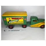 Toys · Play Nine card game · Porcelain doll with rocking chair · Small crocodile toy · Various animal figures · Small wooden rocking chair · Handmade red primitive bear · Stuffed rabbit & dog pillow animals · Red metal toy rotary phone · Junior’s Dial Typewriter · Black metal rotary phone · German tin wind up mechanical horse drawn wagon with driver · Toy metal gray tractor with red wheels · Mechanical Lift Truck NY Lint Toys · Toy cow figure · Folk art papier Mache horse · Folk art black ram figure · Horse pull toy · Folk art white ram figure · Camel figure · Jointed doll with dress · Early handmade teddy bear · Teddy bear with brown fur · Early handmade teddy bear · Schoenhut circus giraffe · Schoenhut circus camel · Schoenhut circus ostrich · Schoenhut circus goat · Schoenhut circus donkey · Schoenhut circus elephant · Schoenhut circus hippopotamus · Schoenhut circus lion · Schoenhut circus tiger · Schoenhut circus buffalo · Schoenhut circus brown bear · Schoenhut circus baby elephant · Early 1900s wooden word game · Lewis E Myers & Company The Chautauqua Industrial Art Desk 1913 · Wrigley’s Spearmint Gum green & yellow metal toy truck · Horse figure pull toy · JC Penney Little Jim wood & metal train pull toy · J Chein colorful tin Easter eggs · Toy Tinkers Choo-Choo Tinker Railway pull toy · Marx tin wind up Army tank No. 3 · J. Chein Green metal truck · Green metal car “City Delivery” · Child wooden spindle chair · Child wooden Kunze ladder back chair · Wooden child’s rocker with red velvet seat · Mohair & straw stuffed teddy bear in white vest · Green painted wooden wagon · Child’s wooden tool bench/worktable · Vintage Spirit of St Louis North American Bear Co blue bear in Pilot outfit · Wooden potty chair with tray · Wooden highchair · Smitty Toys metal toy truck with trailer · Smith Miller Pacific Intermountain Express (PIE) metal truck with trailer · Deluxe Van Trailer Truck United Van Lines red & yellow metal truck and trailer with original box · Metal & brass cannon · Wood frame slates · Miniature upholstered chairs · Jointed teddy bears · Mohair jointed teddy bears · Corn husk dolls · Kidde Brush & Toy Co tin lithograph Susy Goose cleaning toys · Walking plastic dog · Doll size rocking chair
