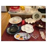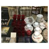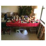 Holiday decor Office supplies Ceramic rooster Lamps Entertainment center Vases Books Vintage saxophone Wall decor TV Couch Chairs Rocking recliner Entry table Linens Dining room table China hutch Rocking chair Bedroom set Beds Pillows Shoes Handbags Clothing Patio furniture decorative plants Folding tables Rugs Small tools Toolboxes Cleaning supplies Gardening supplies Folding chairs Ladder Small kitchen appliances Dishes Coffee table Red glassware |
