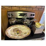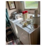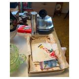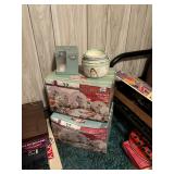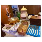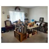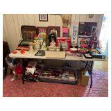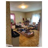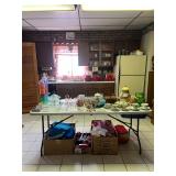 Backyard Shed: Metal Shelving 1960s Huffy Elderado Bicycle, Teal with Banana Seat! Steamer Trunk Tonka Trucks Washboard Ladders Garden Pots Landscaping Tools Back Porch: Vintage Metal Glider Picnic Table Main House: Vintage Baby Clothing Record Albums Parlor Table Pyrex Cinderella Casserole w Cradle 943 M9, New in Box! 3 Piece Chip & Dip Set, New in Box! Cory Brewer, Model DKG-S, New in Box! Vintage Matador Print, Estaban: The Dedication Mid Century Blonde Furniture Vintage Radios West Virginia Glass Christmas Hi-Ball Glasses, New in Box! West Bend Electric Skillet Royal Typewriter Jewelry Boxes Libbey Partytime 8-Piece Glassware Set, New in Box! Anchor Hocking Country Estate 3 Pc Avocado Chip & Dip, New in Box! Aluminum Cake Plate Blonde Lane Cedar Chest Chatham Summer Rose Blanket, New in Packaging! Vintage Children’s Books Homestead Snack Set Informal Milky White Snack Set Barbie Fashion Doll Case Vintage Linens Coleco Telstar Comic Books, The Thing, Mickey Mouse, Whiz Kids, Smurfs Seasonal Décor Collection of Vera Bradley Bags & Accessories Vintage Christmas Vintage Board Games Tiger Oak Dresser Collection of Vintage Home Interiors Décor Lite-Brite Electronic Battleship Tyco Turbo Trains Slot Cars Bach Tuba Stradivarius Violin Small Appliances, New in Box Casio Keyboard Cabbage Patch Dolls Stanley Planes Pyrex Crocks & Other Stoneware Costume Jewelry Angel Décor Oak Curio Cabinet Virginia House Oak China Hutch Mid Century Dining Table & Server Vintage Tupperware Cutco Knives Electric Range Teacups & Saucers RCA Refrigerator FiestaWare Dinnerware Maytag Washer & Dryer Cookware & Bakeware Chest Freezer Hand Tools Hoosier Style Cabinet Esso Motor Oil Can More!