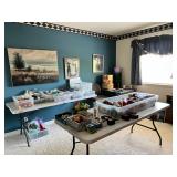 Everything goes part 2. Hey guys we're back at it. There so much more stuff. We hope you come out. Are you still treasure hunting? Well if so we got you! Still have Budweiser and Coca Cola stuff available. There is still a tone of really nice Womens and men's clothing, shoes, still have two bedroom sets. Master bedroom furniture headboard, dresser and 2 night stands, there is a queen or full size bedroom dresser, nightstand, and headboard Chester drawers , armoir, we still have purses ,full library of books , plenty of book Shelfs, artwork throughout the house. Kitchen utensils, bowls, dish sets, sage green arm chairs, coffee tables, office equipment, desk, refrigerator with ice maker and water dispenser, garden tools, patio swing, storage containers, plenty of crafting supplies, commercial Coca Cola drink refrigerator, tons of Christmas decor, gas powered edger, patio umbrellas, diy supplies, LA Kings Jersey framed . Sam Elliot commissioned Art Work by artist Richard Espinosa stunning piece. Hermle Grandfather clock so much more. |
