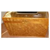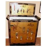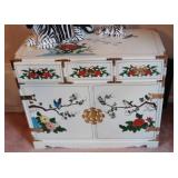 Nice clean estate with designer furniture, Asian dry bar, Asian trunks, brass & glass end tables, Chippendale highboy, side chairs, nightstands, carved front bureaus, kitchen & dining sets, sofas, sewing machine in a cabinet, trunks, nice figural elephant seat, small occasional tables, Southwest style sunroom furniture. |
