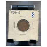 1950-S Lincoln Wheat Cent in Cardboard Holder |