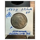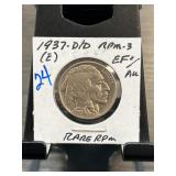 1937-D/D RPM-3 Buffalo Nickel in EF+/AU Condition |