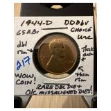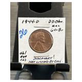 1944-D Lincoln Wheat Cent with DDO, UNC, MS64-BR |