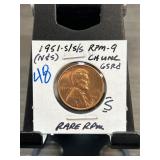 1951-S/S Lincoln Cent RPM-5 MS65RD with Die Clash |