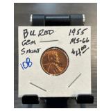 1955-D/D Lincoln Cent RPM-9 MS65 Red |