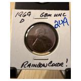 1969-D Lincoln Cent Gem Uncirculated Rainbow Tonin |