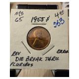 1955-S Lincoln Cent MS-65 with Die Break Error |