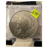 1922-P Peace Silver Dollar, MS-60 Grade |